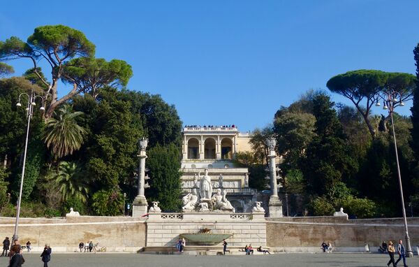 С террасы Пьяццале Наполеоне открывается вид на Пьяццу дель Пополо и на город Рим. С холма ведут многомаршевые лесницы, внизу оформленные ростральными колоннами, аллегорическими скульптурами и фонтанами. Площадь под смотровой площадкой также создана по проекту Джузеппе Валадье (1811—1822).