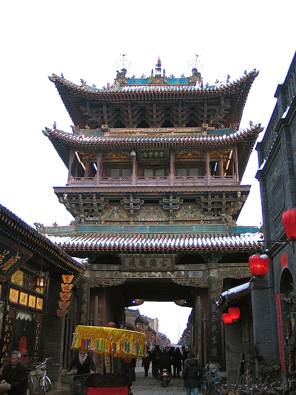 Всего в городе 4 основные улицы, 8 переулков и 72 прохода, соединяющих переулки. Все главные улицы ведут к расположенной в центре Рыночной башне. Последняя является самым высоким зданием в городе и получила своё название в связи с тем, что вокруг неё всегда велась активная торговля[4]. Данная башня в последний раз перестраивалась в 1668 году в годы правления императора Сюанье династии Цин.