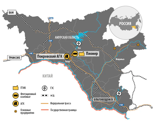 Рудник «Пионер» находится в 7 км от одноимённого посёлка, в 40 км от станции Тыгда на Транссибирской магистрали. Ближайший аэропорт расположен в 60 км от рудника, в городе Зея.