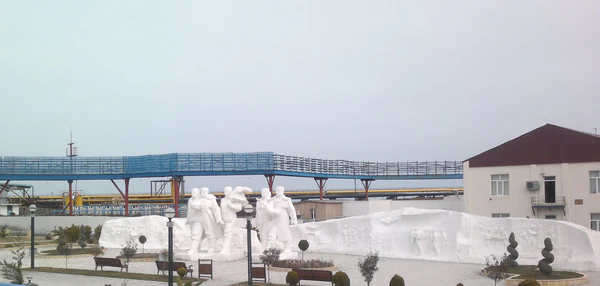 - Памятник азербайджанским нефтяникам в посёлке Нефтяные Камни.