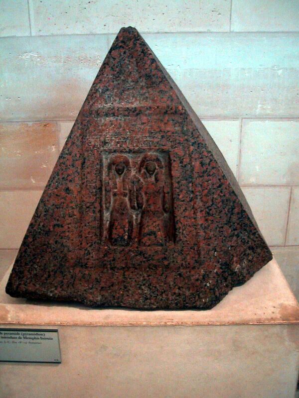 На гранитном пирамидионе пирамиды Аменемхета III в Хаваре, сохранившемся лучше других, нанесена надпись-наставление: «Зрением (глаза) смотри внутрь (кувшины горлышком к глазам) в самый центр (круг с точной в центре) себя, Касанием (камень слева) касайся середины центра касающегося (тот же круг с точкой в центре). Слухом (жужжащее насекомое справа) слушай слушающего (тот же круг с точкой в центре). Вкусом (птица с большим клювом слева повёрнутая к кругу.) вкушай вкушающего в середине в центре (тот же круг с точкой в центре). Нюхом (цветок справа повёрнутый к кругу с точкой) нюхай нюхающего в середине в центре (тот же круг с точкой в центре). Тогда поднимаешься ввысь (крылья) и расширится внимание (мах крыльев) к всецелому высшему (круг на самом верху).