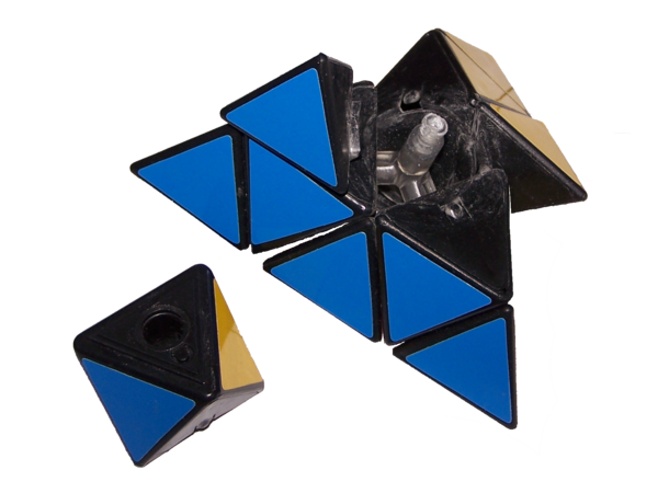 Головоломка состоит из 14 подвижных элементов: 4 осевых (каждый из которых имеет треугольники, обращенные на 3 смежные грани), 6 рёберных и 4 тривиальных угловых. Осевые элементы имеют форму октаэдров, а рёберные и угловые — тетраэдров. При вращении частей пирамидки относительно рассекающих её плоскостей фрагменты перемещаются. Вращение происходит вокруг осей, направленных из центра к вершинам головоломки.