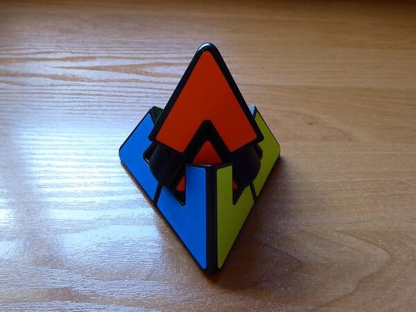 Сборка пирамидки проще сборки кубика Рубика. Взаимное расположение цветных граней осевых и тривиальных элементов задано конструкцией, и они легко выставляются в правильные положения (трилистник, аналог «креста» у кубика Рубика, только конструктивно он формируется одновременно для всех граней), после чего остаётся упорядочить 6 рёберных элементов.