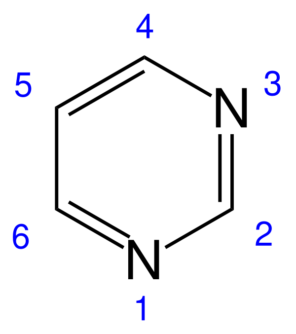 Пиримидин (C4N2H4, 1,3- или м-диазин, миазин) — гетероциклическое соединение, имеющее плоскую молекулу, простейший представитель 1,3-диазинов.
