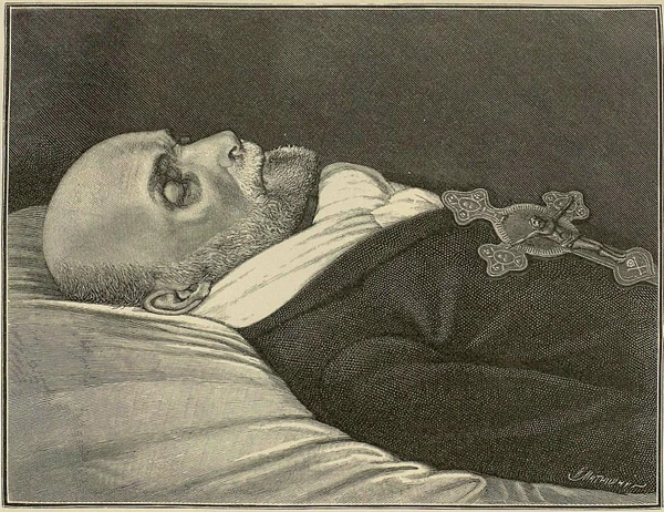 В начале 1881 года Пирогов обратил внимание на боль и раздражение на слизистой твёрдого нёба. 24 мая 1881 года Н. В. Склифосовский установил наличие у Пирогова рака верхней челюсти. Н. И. Пирогов умер 23 ноября 1881 года в 20 часов 25 минут[22] в селе Вишня (ныне — часть города Винница). По воспоминаниям его сына, перед началом агонии Н. И. Пирогова «началось лунное затмение, окончившееся сразу после развязки».