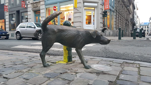 Работа изображает мочащуюся беспородную собаку в натуральную величину с занесенной на тротуарный столб задней лапой и тематически связана с Писающим мальчиком и Писающей девочкой. Это образец своеобразного юмора (нидерл. zwanze)[3][4], популярного в Брюсселе.
