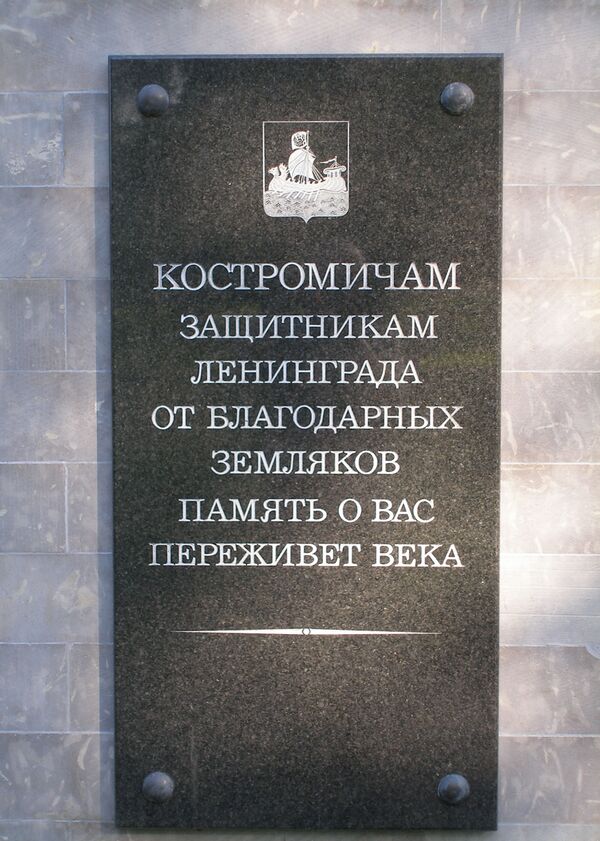 Перед входом на Пискарёвское мемориальное кладбище установлена памятная мраморная доска с надписью:
