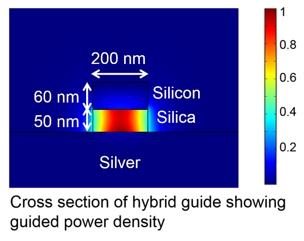 Плазмоника обычно использует так называемые поверхностные плазмонные поляритоны (SPP) [2], которые представляют собой когерентные электронные колебания, распространяющиеся вместе с электромагнитной волной вдоль границы раздела между диэлектриком и металлом. Условия возникновения SPP в значительной степени зависят от свойств проводящей среды. В частности, так как электронный газ в металле колеблется вместе с электромагнитной волной, а движущиеся электроны рассеиваются, то возникают омические потери в плазмонных сигналах, что ограничивает расстояние их передачи[4]. Это не относится к гибридным оптоплазмонным световодам [5] [6] [7] или плазмонным сетям с применением усиления [8]. Помимо SPP, существуют локализованные поверхностные плазмонные моды, поддерживаемые металлическими наночастицами. Оба эффекта характеризуются большими значениями импульса, которые допускают сильное резонансное увеличение локальной плотности фотонных состояний [9] и могут использоваться для усиления слабых оптических эффектов оптоэлектронных устройств.