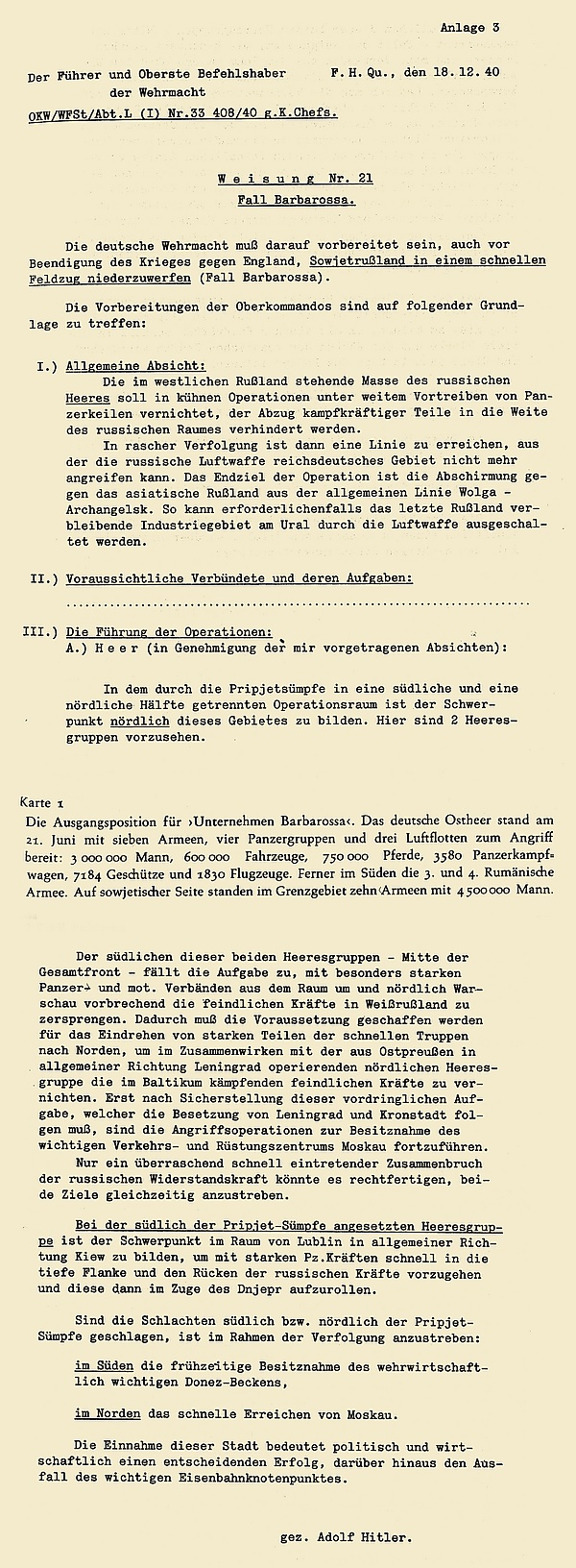 - Weisung Nr. 21 «Fall Barbarossa», 18. Dezember 1940 // 1000dokumente.de
