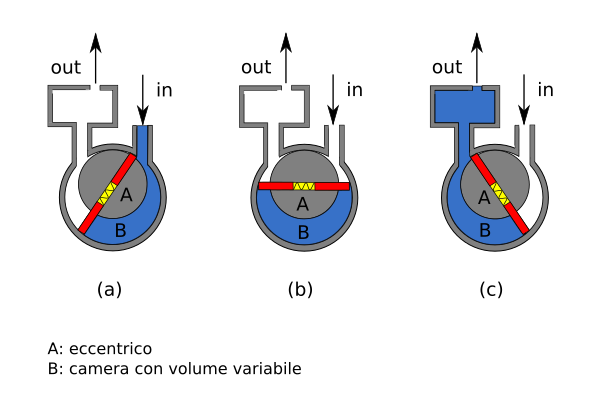 Изменение рабочего объёма (регулирование гидромашины) осуществляется путём изменения эксцентриситета — величины смещения оси ротора относительно оси статора.
