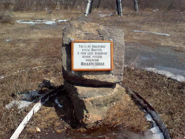 С 1907 года побережье бухты Пластун стало заселяться русскими переселенцами: вольными людьми, казаками, старообрядцами для укрепления дальневосточных рубежей Российской империи. Они основали здесь первое русское поселение — деревню Филаретовку.