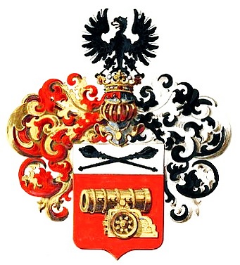 В червленом щите золотое изображение царь-пушки, обращенной вправо, на золотом лафете. В серебряной главе щита накрест две черные булавы. Щит увенчан дворянским коронованным шлемом. Нашлемник: черный орел. Намет: справа — червленый с золотом, слева — черный с серебром.