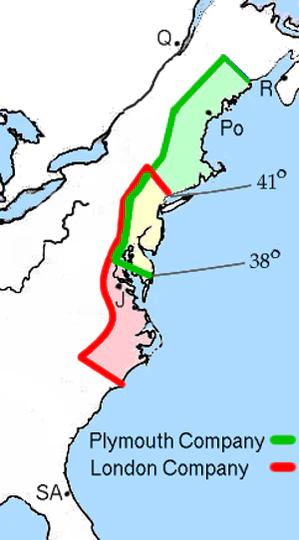 В 1607 году была основана колония Поупхэм в устье реки Кеннебек (в настоящее время это территория штата Мэн). В этом же году Лондонская компания основала колонию Джеймстаун, однако в отличие от последней, Поупхэм просуществовал всего год.