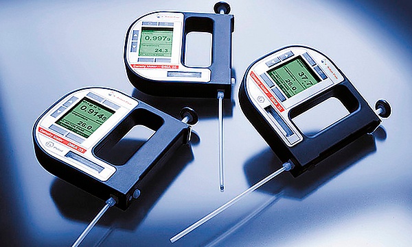 Поскольку плотность сильно зависит от температуры, для исключения этого влияния на результат измерительная трубка термостатируется. Поддержание температуры осуществляется электронным термостатом, встроенным в прибор. Стандартная температура измерения плотности жидкостей составляет 20 °C.