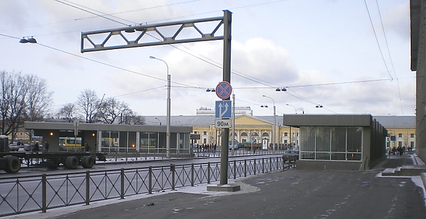 - Здание Балтийского вокзала, к которому пристроен павильон станции метро «Балтийская».