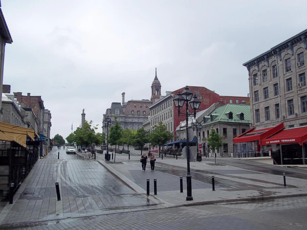 Широкая площадь с рядами двумя деревьев в её середине спускается вниз от Монреальской ратуши и улицы Нотр-Дам до набережной и улицы Коммуны. Во время высокого туристического сезона на площади работает множество уличных художников и киосков. В рождественский сезон деревья на ней подсвечиваются. В любое время года здесь и на близлежащих улицах — Сен-Поль и Vieux Port, работает много ресторанов. Летом площадь является зоной, свободной от автомобилей.