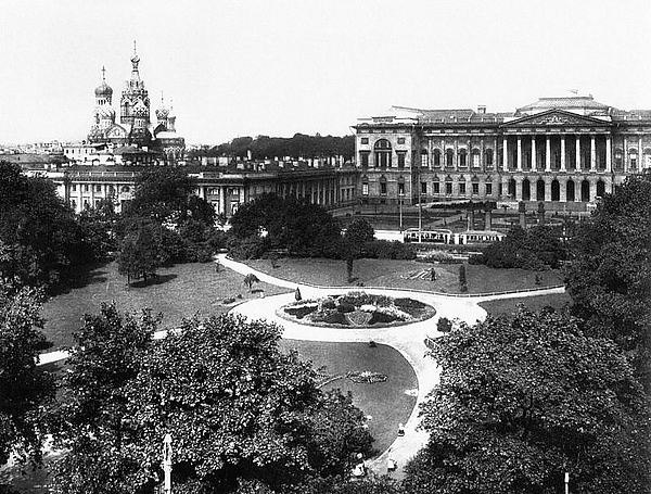 После сильного пожара 1910 года дом № 13 по Итальянской улице был передан в городскую казну. По проекту инженеров И. Балбашевского и А. Максимова внутренние помещения были перестроены для театральных представлений. В 1911 году здесь группой разбогатевших официантов открывается театр «Палас»[16]. 27 июня 1914 года с запада от Михайловского дворца состоялась закладка Дворца выставок по проекту архитекторов Л. Н. Бенуа и С. О. Овсянникова, в дальнейшем соединённого с Михайловским дворцом переходом. Но из-за начавшейся войны работы были приостановлены, строительство закончилось только в 1919 году[17][18].