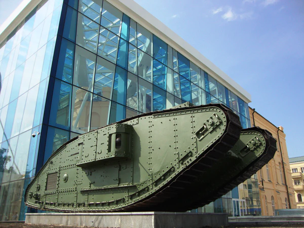 - На площади установлен английский танк Первой мировой войны Mark V, захваченный РККА у Добровольческой Армии в декабре 1919 года под Харьковом (или в 1920 на Каховском плацдарме). Танк наряду с четырьмя другими такими же до 1923 входил в 4-й, затем 10-й (харьковский) бронетанковый отряд РККА Селявкина. Ранее он стоял во дворе Покровского монастыря, в котором находился Харьковский исторический музей.