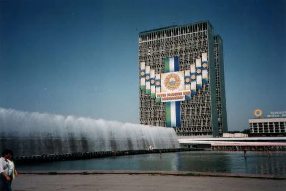 В 1965 году с южной стороны площади на месте домов, идущих вдоль улицы Ленинградской, было начато строительство нового современного здания Совета Министров Узбекской ССР в стиле «бетон-стекло»[5] по проекту группы архитекторов (Б. Мезенцев — руководитель проекта, А. Якушев, Б. Зарицкий, Е. Розанов, Л. Адамов[6], В. Шестопалов и Ю. Коростелёв), которое было завершено в 1967 году. Площадь получила новое архитектурно-художественное оформление.
