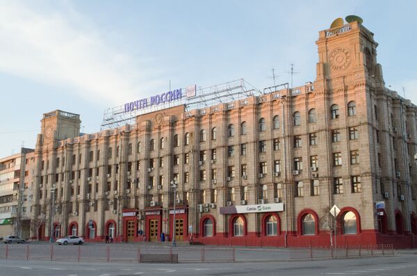 Автором проекта стал лауреат Сталинской премии Е. И. Левитан. Строительство Дома связи было начато в 1953 году, а 30 июня 1955 года было окончено, и госкомиссия установила, что здание пригодно к эксплуатации[38]. Здание Главпочтамта является памятником архитектуры и градостроительства регионального значения[3]:№ 284[41].