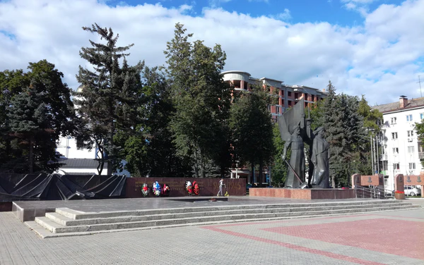 Через 10 лет, 9 мая 1985 года, на площади была установлена бронзовая скульптурная композиция из трёх фигур: женщины-матери, солдата и рабочего тыла, символизирующая единство народа в борьбе против захватчиков. Общая высота композиции — 7 м, высота фигур — 5 м. Авторы памятника — скульптор А. А. Перевертень и архитектор В. И. Фомин.