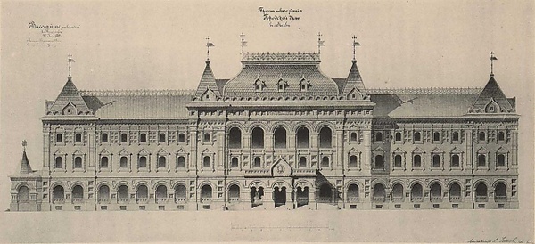 Архитектор Осип Бове, занимавшийся восстановлением Москвы после пожара 1812 года, отвечал за фасадное убранство города. Он объединил визуально Театральную площадь с Воскресенской, изменив расположение окон углового дома и использовав иное оформление. В 1890-х было снесено здание судебных учреждений вместе с «Ямой», на этом месте по проекту архитектора Дмитрия Чичагова возвели здание городской думы. Напротив располагался большой пятиэтажный дом, который занимала московская гостиница (в настоящее время — «Гранд-отель»)[5][6].