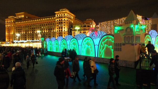 К середине XVII века площадь занимали различные торговые ряды. На месте современного здания филиала Государственного исторического музея (изначально — здание городской думы, в советский период — Музей имени Ленина) находились лавки яблочного, дынного, огуречного, ягодного и капустного рядов. Дальше от моста располагались курятный (охотный), харчевой и пряничный ряды, а на западе стояли крупяные лавки. Все торговые постройки были деревянными и после каждого большого пожара возводились заново. В 1680 году Неглиненские ворота переименовали в Воскресенские, такое же название получил мост. В начале XVIII века по указу Петра I вокруг Кремля и Китай-города были сделаны земляные бастионы, а перед ними выкопаны рвы, в один из которых пустили реку Неглинную. К середине века на месте некоторых торговых рядов возвели двухэтажное здание с подвальным помещением для Монетного двора. Позднее в здании размещались судебные учреждения, а в подвальном помещении тюрьма «Яма», в которой после подавления крестьянского восстания находился Емельян Пугачёв. В 1798 году на углу площади и Тверской улицы построили небольшие каменные дома генеральши Курманлеевой[2][4].