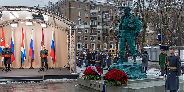 11 февраля 2022 года Мосгордума одобрила проект установки на площади памятника Фиделю Кастро[5]. Летом 2022 года начались работы по устройству площадки для памятника. Его изначально планировали установить 13 августа — в день рождения Фиделя Кастро[6]. Торжественное открытие памятника состоялось 22 ноября 2022 года в присутствии президента Кубы Мигеля Диас-Канеля и президента России Владимира Путина.