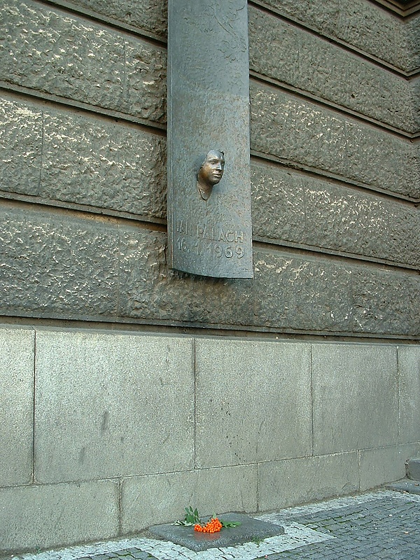 - Памятник Яну Палаху. К югу от Манесова моста на площади находится мемориал в память о трагической гибели (самоубийстве) Яна Палаха. Пара скульптур под названием «Дом матери и дом сына» — работа американского скульптора Джона Хейдука. (Оригинальное английское название «Дом самоубийцы» и «Дом матери самоубийцы».) Скульптор представил скульптуру президенту Чехословакии Вацлаву Гавелу и чехословацкому народу во время своего визита в Прагу в октябре 1991 года. Деревянная модель была впервые установлена в Пражском Граде. В 2015 году монумент с символическим пламенем было изготовлен из стали и установлен на берегу Влтавы на площади Яна Палаха. Он был торжественно открыт в январе 2016 года.