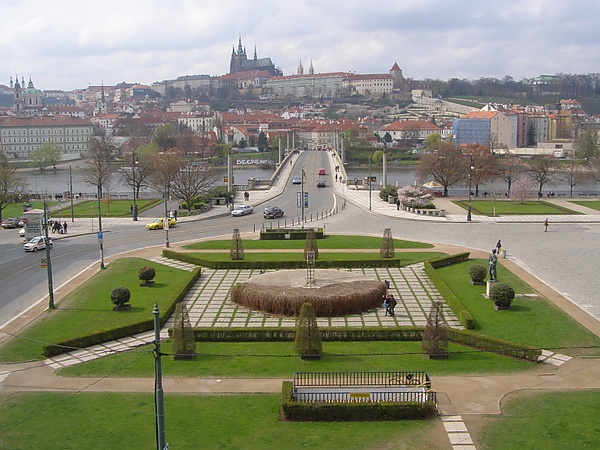 В начале 19 века отсюда можно было добраться на пароме до пражского Малого города на левом берегу реки Влтавы. Чугунный пешеходный мост был построен в 1860-х году. Современный Манесов мост длиной 186 м и шириной 16 м был построен в 1914 году[7].