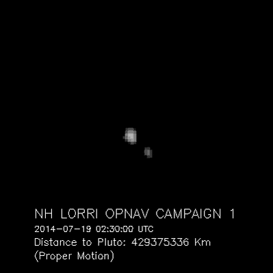 «Новые горизонты» сделал первое фото Плутона ещё в конце сентября 2006 года, в целях проверки камеры LORRI (Long Range Reconnaissance Imager)[140]. Изображения, полученные с расстояния приблизительно в 4,2 млрд км, подтверждают способность аппарата отслеживать отдалённые цели, что важно для маневрирования по пути к Плутону и прочим объектам в поясе Койпера.