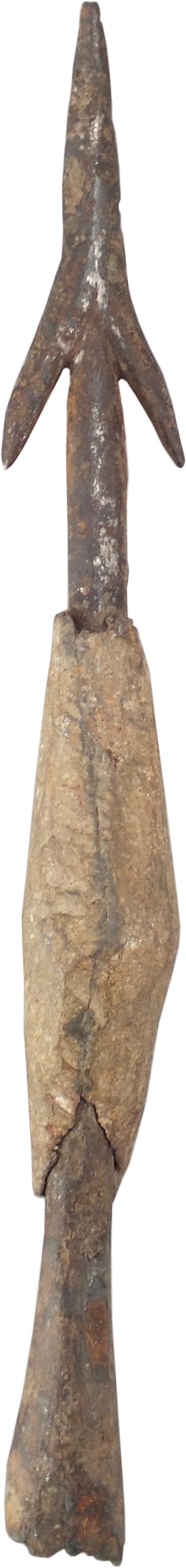 Данные археологии подтверждают описания, приведённые в источнике. Большинство находок представляет собой наконечник на тонком железном стержне, место соединения которого с древком закрывалось свинцовой насадкой веретенообразной формы. Деревянная часть в большинстве случаев не сохранилась. Диаметр отверстия в свинцовых насадках, а также небольшой обломок хвостовой части древка находки из Роксетера (Великобритания) позволяют установить его толщину: около 1 см.