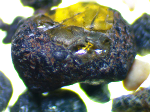 Вулканический материал (пирокластика) туфового конуса содержит оливин — силикатный минерал, содержащий железо и магний (в основном разновидность перидот). Зелёный цвет оливинового песка обусловлен наличием двухвалентного железа. Минералы группы оливина часто входят в состав базальтовой лавы выходящей из магмы[12]. Оливин иногда на гавайях называют «Гавайской Алмаз»[13]. Оливин более плотный поэтому накапливается на пляже, а менее плотный вулканический песок выносится в море[14][15].