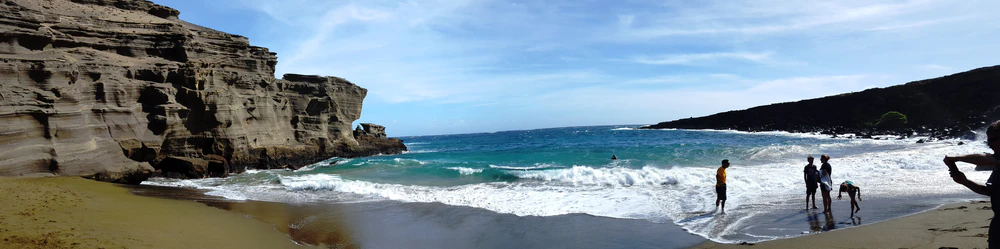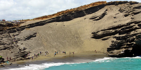 На юге острова Гавайи постоянно дуют сильные ветры, поэтому дорога к пляжу тяжёлая, (если идти против ветра) из-за солнца и летящего песка (ветровая эрозия).