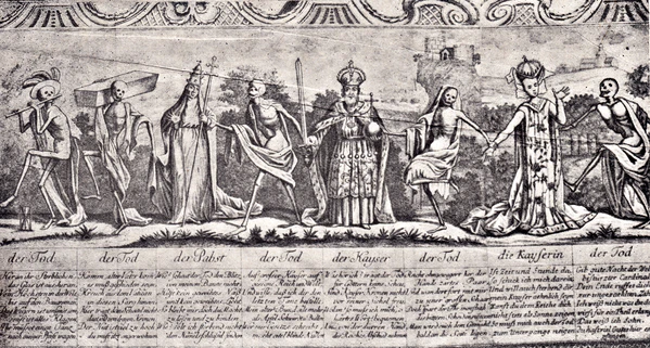 Первые «Пляски смерти», появившиеся в 1370-х годах, представляли собой серии рифмованных девизов, служивших подписями к рисункам и живописным полотнам. Они создавались вплоть до XVI века, однако, архетипы их восходят к древней латинской традиции.