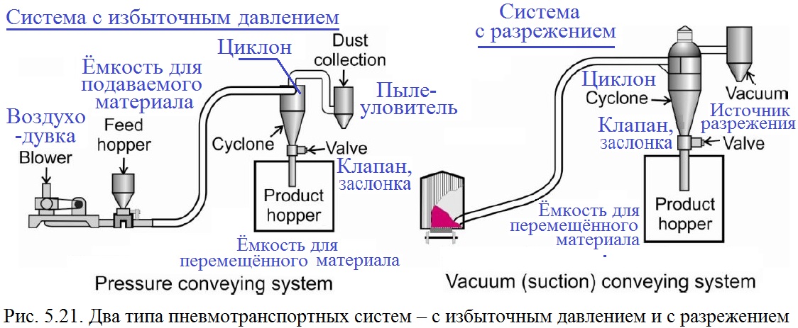 В зависимости от того, каким способом создаётся поток воздуха, пневматические транспортирующие установки разделяют на два типа: