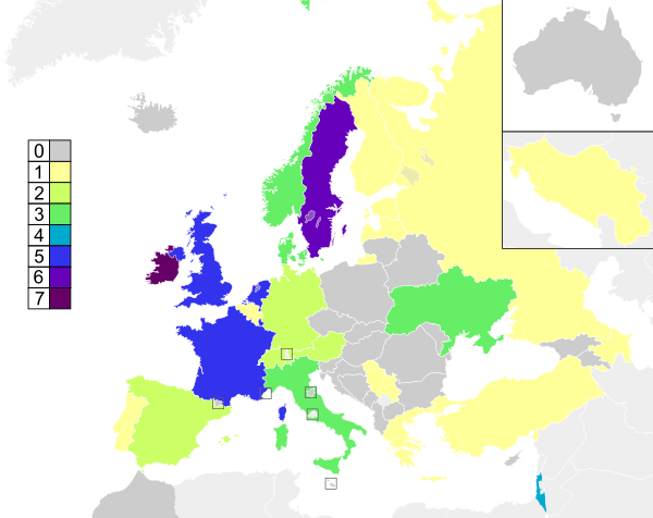 | 14 | Французский | 1956, 1958, 1960, 1961, 1962, 1965, 1969, 1971,1972, 1973, 1977, 1983, 1986, 1988 | |