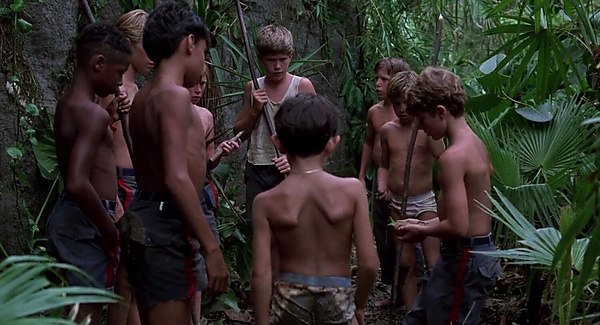 Во время некоего военного конфликта самолёт, эвакуирующий группу британских мальчиков, терпит крушение над Тихим океаном. Выжившие подростки оказываются на необитаемом тропическом острове. Первыми значимыми фигурами становятся честный, смелый Ральф и полный, страдающий астмой, умный мальчик, известный под прозвищем Хрюша. С помощью найденной морской раковины они созывают остальных выживших. На общем собрании Ральфа избирают лидером. Его главным оппонентом становится Джек Меридью, староста церковного хора, который вместе со своими хористами формирует отряд охотников[6].