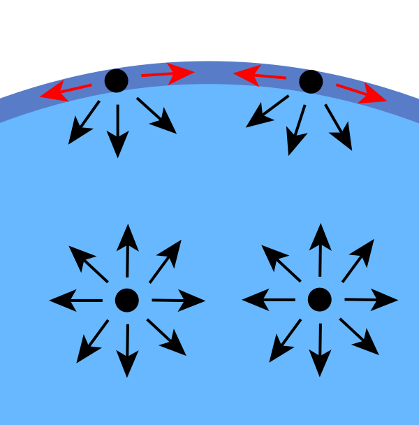 Так как увеличение площади поверхности раздела жидкость — газ требует совершения работы, жидкость «стремится» уменьшить площадь своей поверхности: