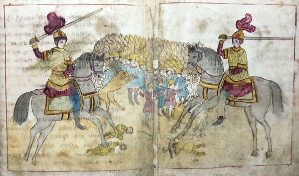 Повесть рассказывает о царице, оклеветанной свекровью перед мужем в супружеской измене. Свекровь уговорами заставляет одного из приближённых царя лечь в постель к спящей царице, недавно родившей двух мальчиков-близнецов. Приведя царя, свекровь предъявила это как доказательство измены его супруги, и царица была брошена в тюрьму, а затем предана суду. Царь повел изгнать её вместе с двумя сыновьями-близнецами в пустыню. Там одного из детей похищает и воспитывает львица. Царица же со вторым ребенком находит приют у некоего христианина. Спустя время на царство отца изгнанных детей нападает враг, и оба брата, услышав об этом, выходят на поле битвы и одерживают победу. После этого выясняется, что они родные братья и к тому же сыновья царя. Узнав правду о своей супруге, царь посылает за ней, и она возвращается. Завершает повесть общее прославление Бога.