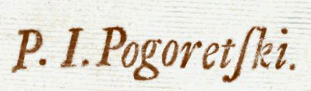 Эта книга Сенеки ... была приобретена из библиотеки Альберта И. И. профессора богословия в Лугдуно-Батавской Академии, которому когда-то досталась в награду от схолархов; теперь же приобретена для моей коллекции книг на некоторую сумму денег и вследствие благодарности и дружбы из Фиалкусцианского музея, память о котором с величайшим почётом сохраняется и всегда будет сохраняться. 1 июня 1764. Кандидат медицины Погорецкий. Приписка: ....Сия книга куплена в Императорском Воспитательном доме в Москве после доктора Г. Погорецкого. 1782 года в Июне месяце.