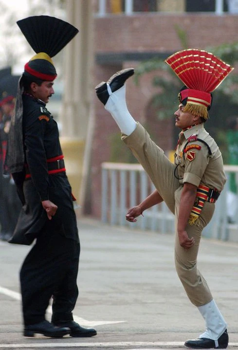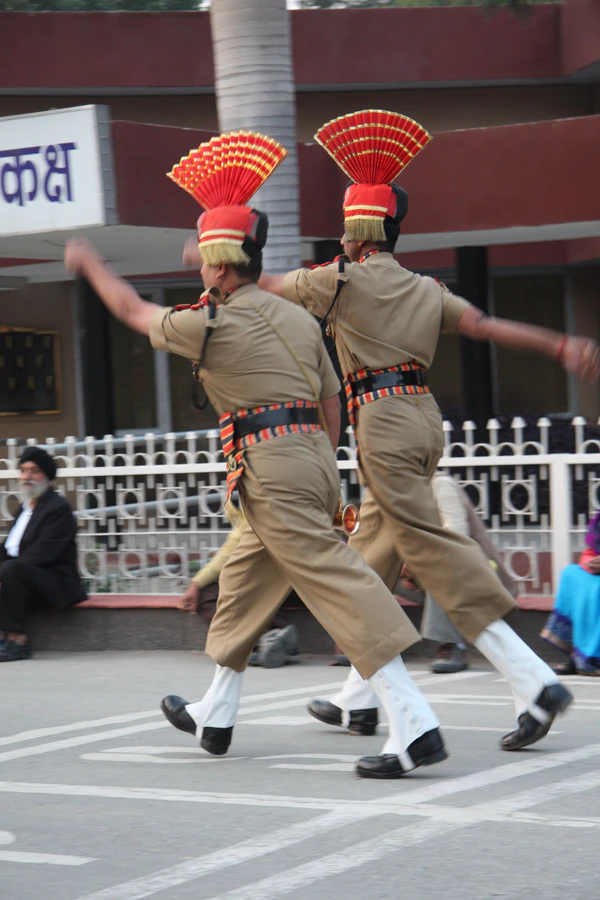 Церемония спуска флагов на границе в городе Вагах происходит ежедневно с 1959 года[1], её проводят бойцы войск пограничной безопасности Индии и пакистанские рейнджеры. Участники, одетые в красочные мундиры[1], выполняют быстрые и отрывистые перемещения, похожие на танцевальные движения. Церемония является символом соперничества между двумя нациями и в то же время сотрудничества и дружбы. Похожие парады проводятся на границе Mahavir/Sadqi близ Фазилики и Hussainiwala/Gandasinghwala близ Фирозпура.