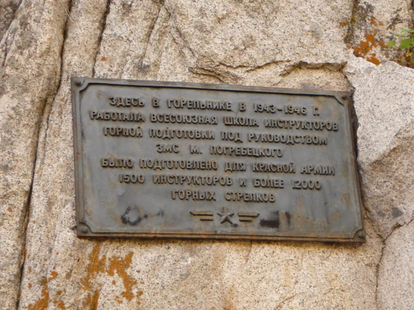 | Здесь в Горельнике в 1943—46 гг. работала Всесоюзная школа инструкторов горной подготовки под руководством змс М. Погребецкого. Было подготовлено для Красной армии 1500 инструкторов и более 12000 горных стрелков. |