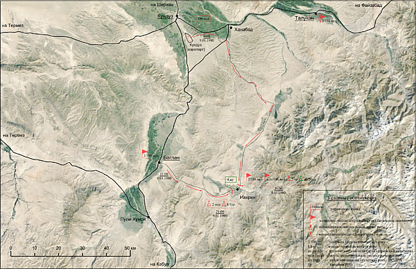 9 января 1980 года в 9:00 по местному времени усиленный 2-й мотострелковый батальон начал выдвижение по следующему маршруту: аэродром Кундуз → Ишакун → Ишкашим → Бурка → Нахрин.