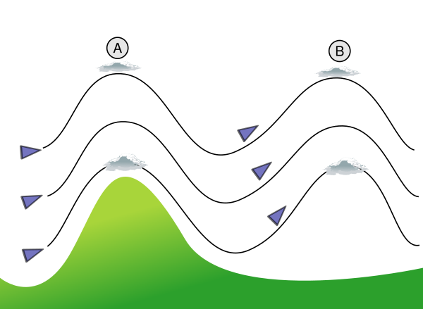 Вертикальное движение воздуха вызывает периодические изменения в скорости и направлении движения в потоке. Подветренные волны всегда возникают группами на подветренной стороне препятствия или воздушного потока, что их вызывает. На первом спуске такого воздуха возникает турбулентный горизонтальный вихрь, так называемый ротор, который приводит к колебаниям. Подветренные волны достигают наибольшей силы при условии стабильного горизонтального уровня свойств слоев воздуха над препятствием и нестабильного приповерхностного слоя[1].