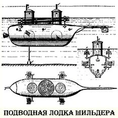 Известна также первая в мире цельнометаллическая подводная лодка российского изобретателя К. А. Шильдера, двигателем которой служили гребные устройства, повторяющие форму утиной лапы. С этой подлодки, испытанной в 1834 году, был впервые осуществлён успешный подводный запуск ракет[6].