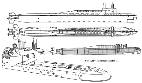 Жидкостная двухступенчатая баллистическая ракета морского базирования Р-29Р (Р-29Р, SS-N-18), представляла дальнейшее развитие ракеты Р-29 и отличалась от неё наличием разделяющейся головной части с блоками индивидуального наведения (РГЧ ИН). Ракеты могли оснащаться различными комплектациями головных частей — одна, три или семь боеголовок. Был реализован принцип полной астрокоррекции[1]. Для этой ракеты в 1972 году ЦКБМТ «Рубин» и начал разработку РПКСН 667БДР «Кальмар» (Delta-III), как дальнейшее развитие проекта 667БД «Мурена-М» (Delta-II). Система управления нового корабля позволяла выстреливать весь боекомплект в одном залпе. Кроме ракетного оружия, более совершенной системы управления ракетной стрельбой, улучшенной акустической защиты и РЭВ (новые НК, БИУС, ГАК и средства связи), а также улучшенными условиями обитаемости экипажа, в целом проект 667БДР был улучшенной модификацией проекта 667БД[2]. Головная лодка проекта К-441, оказалась фактически второй, так как по проекту 667БДР был достроен 5-й корпус проекта 667БД К-424. Всего было построено 14 кораблей.