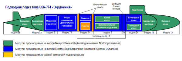 Отечественным аналогом лодок типа «Вирджиния» являются близкие по основным размерам и скорости хода АПЛ проекта 885 «Ясень» (тип «Северодвинск»)[41].