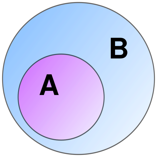 Множество называется подмножеством множества , если все элементы, принадлежащие , также принадлежат [1]. Формальное определение: