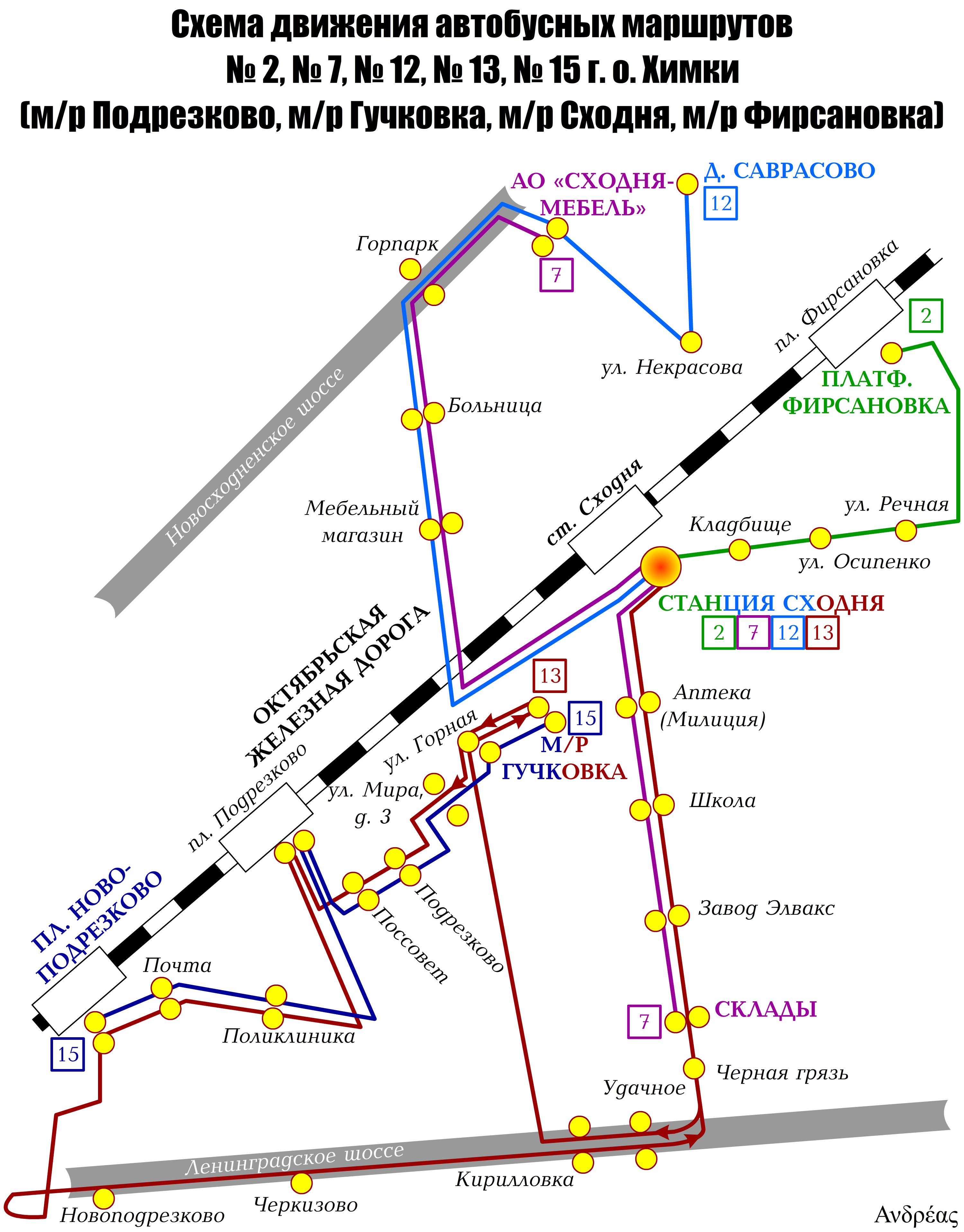 Из Москвы можно также добраться областными автобусами: от станции метро «Водный Стадион» — № 350 Солнечногорского ПАТП и № 400 Зеленоградского автокомбината г. Москвы (Черкизово, Кирилловка), № 370, № 482 а/к 1786 г. Химки (Верескино, Новоподрезково); от станции метро «Водный Стадион» — автобусом № 440 Солнечногорского ПАТП (Черкизово).